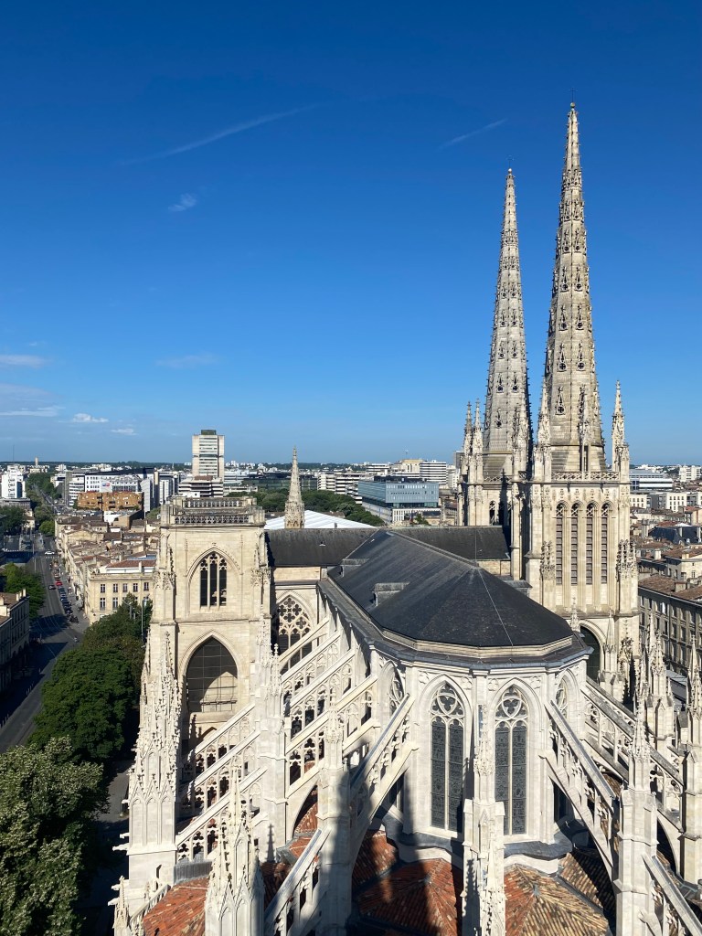 Está ubicada en la plaza Pey Berland y aunque fue diseñada con cuatro torres, finalmente se construyeron solo dos. Una de ellas y la más importante, la Torre Pey Berland, es visitable y desde ella, a más de 40 metros de altura, se puede disfrutar de una de las vistas más bonitas de Burdeos.