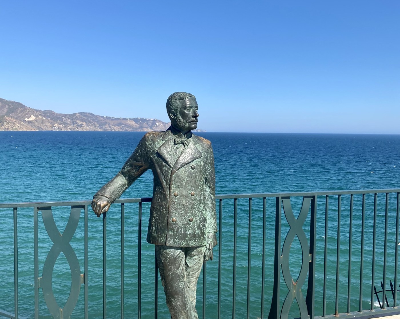 En una de las barandillas del balcón se encuentra la estatua del Rey Alfonso XII, en recuerdo a una visita del monarca después de que la comarca de Axarquía sufriera un devastador terremoto.