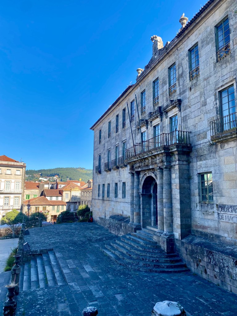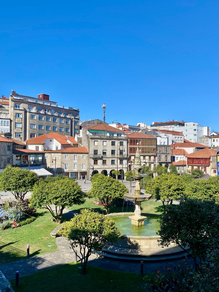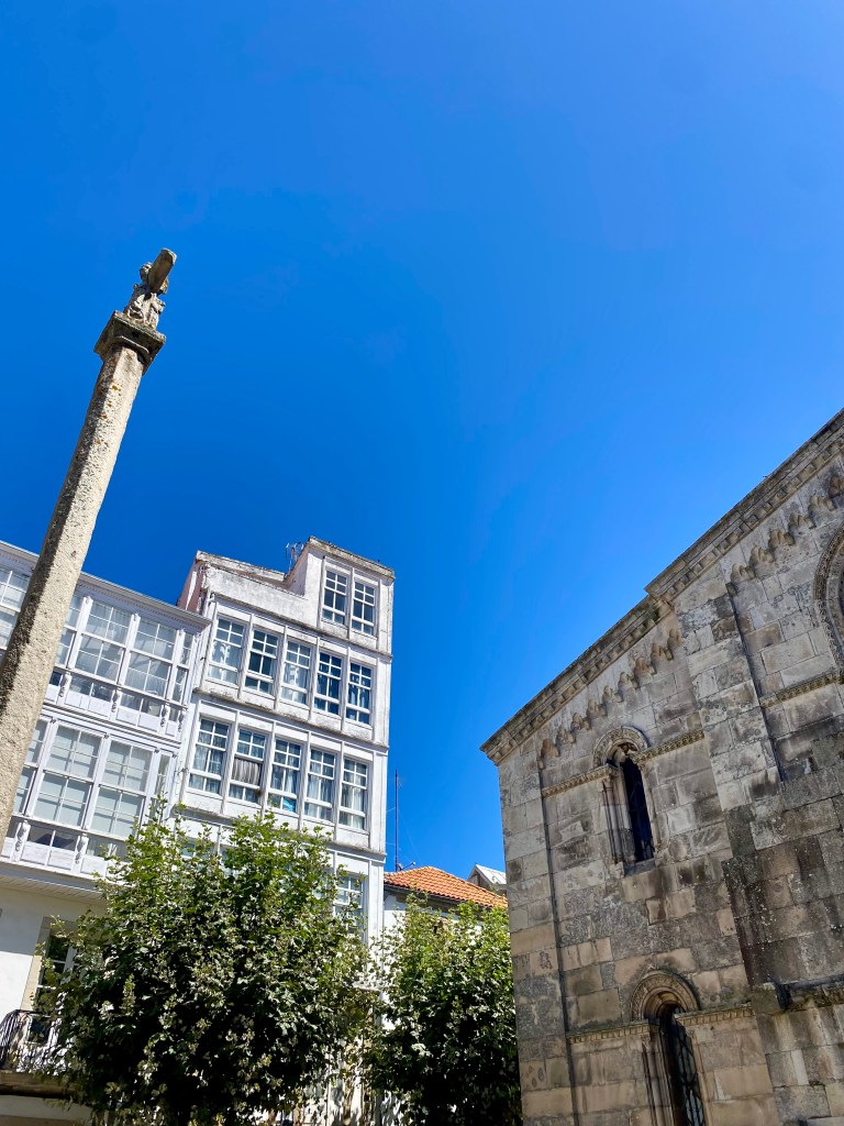 Desde aquí y para introducirse en el centro hay que recorrer la Rua Soportales, una preciosa y corta calle llena de soportales de la Edad Media que protegen del sol diferentes terrazas y que tiene vistas a las torres de la iglesia de la Virgen Peregrina.
