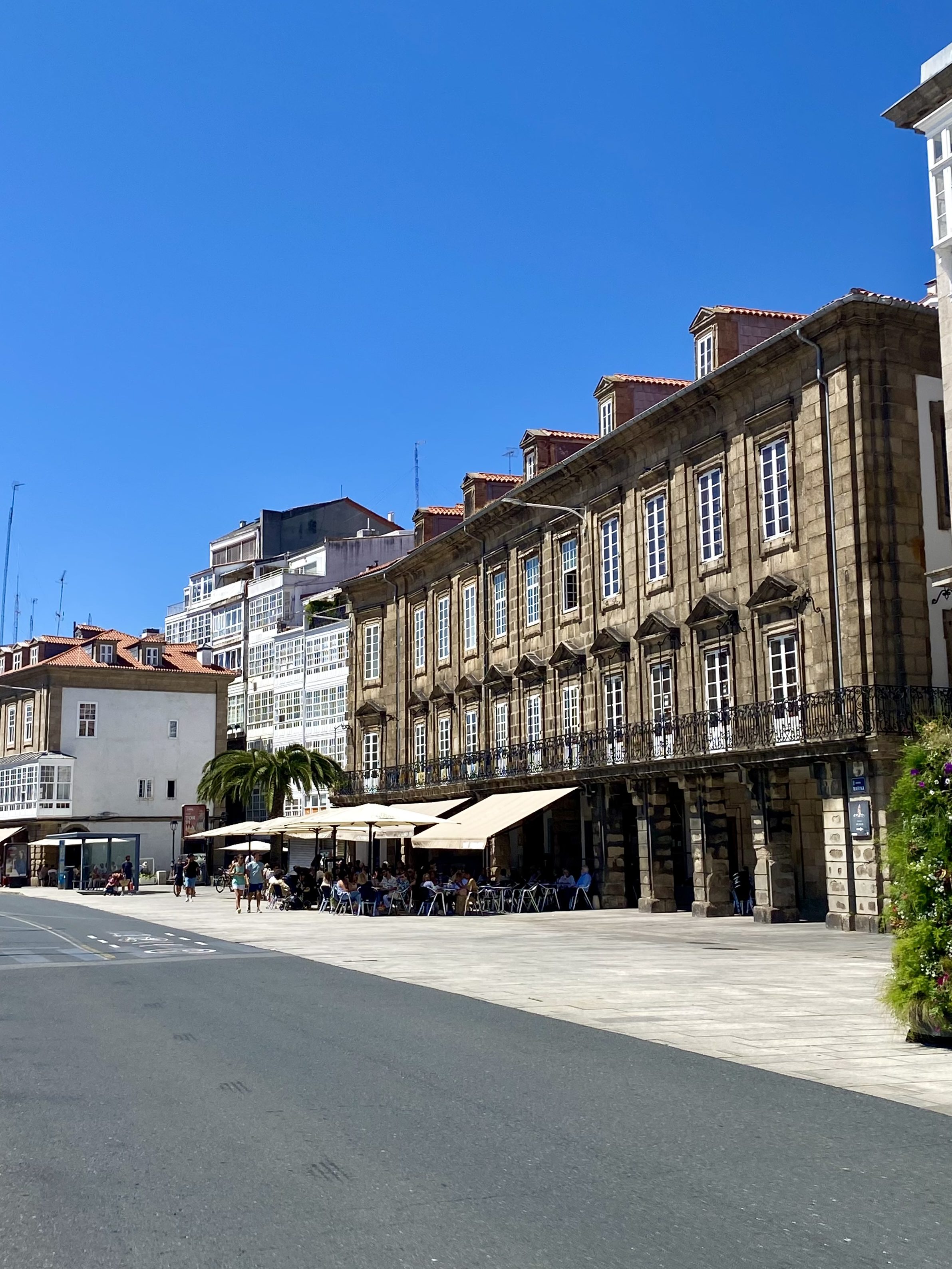 Desde este punto salen las calles del centro de la ciudad, destacando la Rúa do Franco, la más famosa y comercial y donde poder disfrutar de la comida típica de Galicia, destacando el marisco, la empanada gallega o los pimientos de Padrón. Todo ello marinado por un buen Albariño o su famosa Cerveza Galicia.