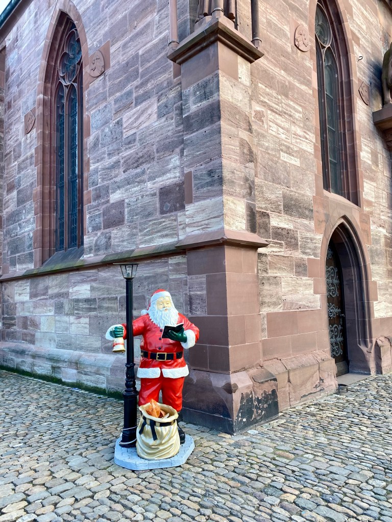 Por la parte de atrás se puede entrar hasta un pequeño claustro y al mirador Pfalz,desde donde observar gran parte de la ciudad. En esta misma plaza, en la época navideña, se llena de un bonito y encantador mercado navideño con diferentes puestos de alimentación y de souvenirs. También se instala un inmenso abeto navideño decorado por el conocido decorador de Basilea Johann Wanner. y muy cerca se puede encontrar alguno de los mejores restaurantes de Basel.