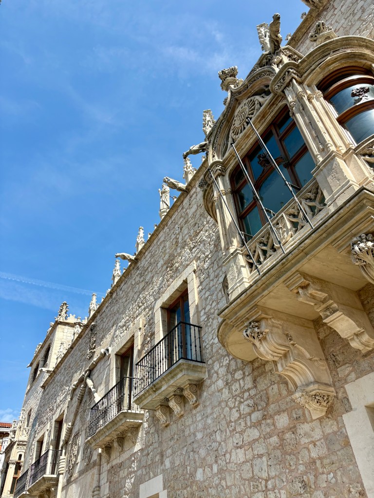 En su fachada se pueden ver figuras como la del emperador Carlos V, junto a otros personajes históricos vinculados a la ciudad, como el Cid. En el interior se encuentra la sala de Poridad, donde se exponen objetos relacionados con este caballero, y desde allí es posible subir a una de sus torres para disfrutar de unas magníficas vistas del Puente de Santa María, el Paseo del Espolón y el río Arlanzón.