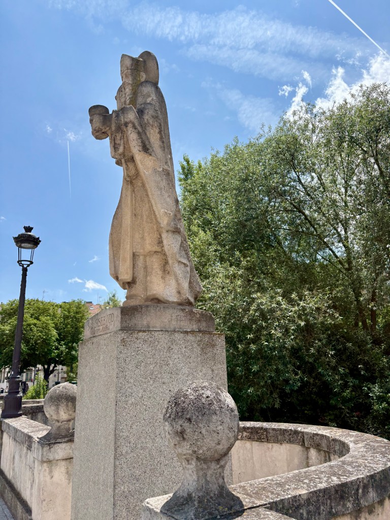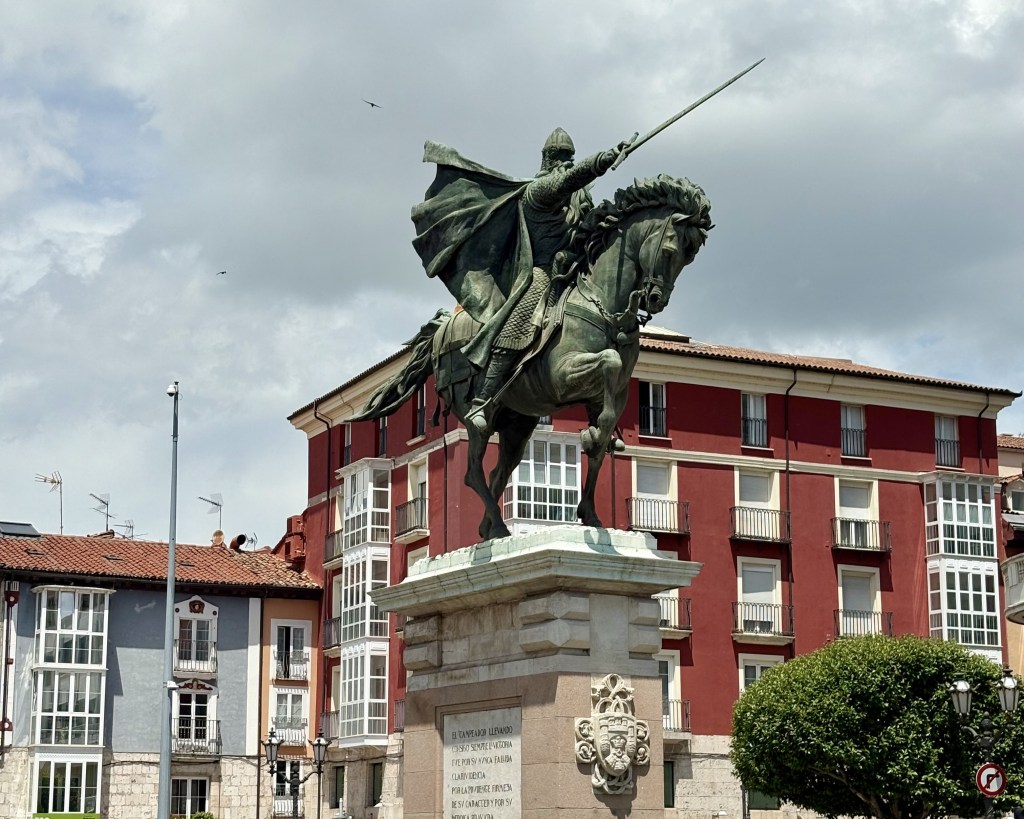 Esta imponente estatua ecuestre del Cid Campeador, una escultura de bronce situada en la Plaza del Mío Cid, justo al inicio del Puente de San Pablo, representa al legendario caballero castellano, Rodrigo Díaz de Vivar, con su característica barba, montado sobre su fiel caballo Babieca y empuñando la espada Tizona, en el momento en que cruza el río Arlanzón camino del destierro, al abandonar Burgos. Cabe destacar que el Cid nació en Vivar, a tan solo 5 kilómetros de la ciudad, y mantuvo una estrecha relación con Burgos, donde aún se conservan numerosos vestigios y recuerdos de su vida.