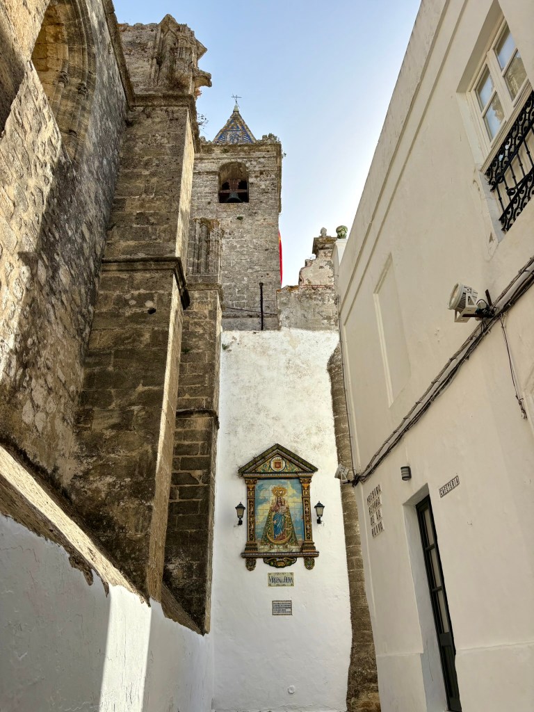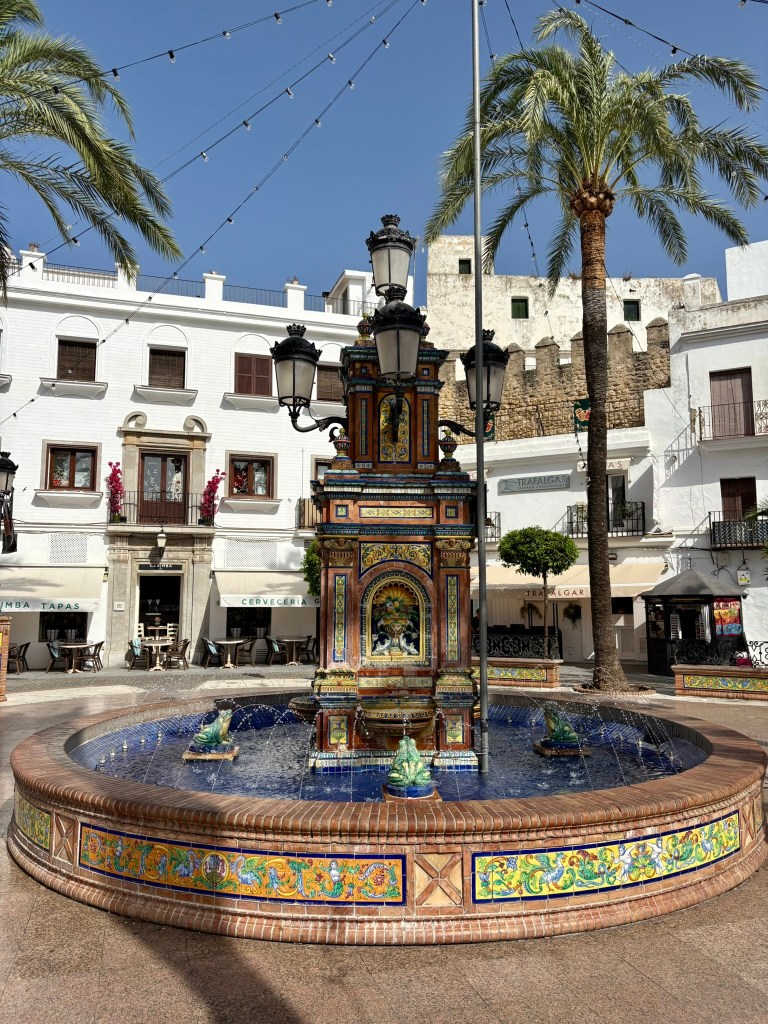La Plaza de España, también llamada Plaza de los Pescaítos, es el punto de encuentro más emblemático. Su fuente central, recubierta de azulejos sevillanos, se ha convertido en símbolo del pueblo. Alrededor se ubican bares y restaurantes que la convierten en el lugar más animado de Vejer.