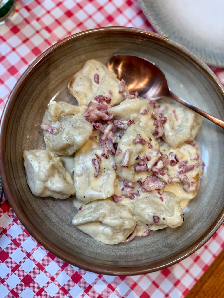 También es habitual encontrar recetas como el Bouneschlupp, una sopa espesa de judías verdes, patatas y embutido, ideal para los meses más fríos. A ello se suman los Kniddelen, una especie de gnocchis locales elaborados con harina, huevo y leche, que suelen servirse con bacon crujiente y nata o acompañando platos de carne, y que representan otra de las elaboraciones más típicas del país.